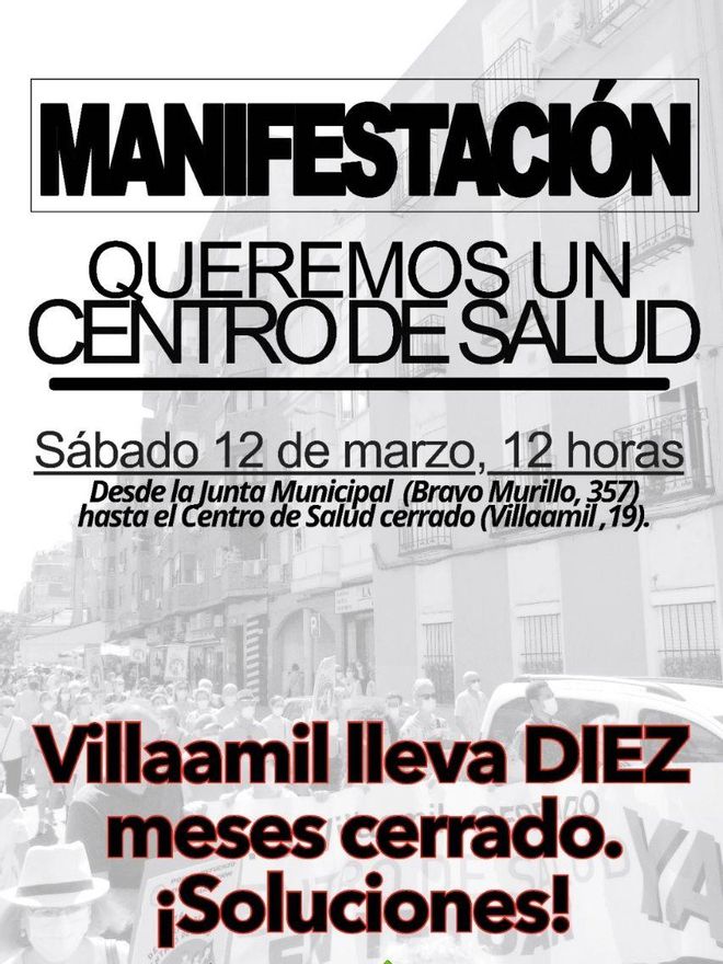 El mismo mes de junio se celebró la primera manifestación contra el cierre, a la que siguió una concentración en julio en la Plaza de las Palomas, una nueva manifestación en septiembre que transcurrió por Bravo Murillo hasta el cerrado centro de salud o una concentración con cacerolada frente a la Junta de Distrito de Tetuán el mes de noviembre.