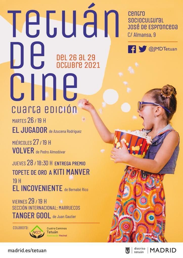 Entre los días 26 y 29 de noviembre, vuelve Tetuán de cine al Centro Sociocultural José Espronceda. Se trata de la cuarta edición y vuelve a contar con el impulso de la Asociación Vecinal Cuatro Caminos-Tetuán.
