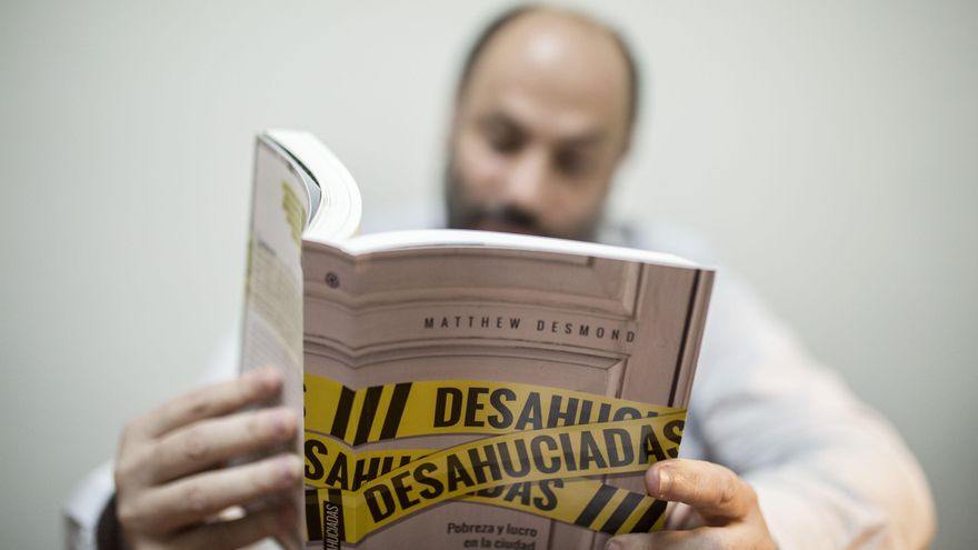 César Pinto abre la puerta de su modesto despacho en Gran Vía. Es un habitáculo, dispuesto en hilera con otros despachos pequeños en un larguísimo y estrecho pasillo. Tiene una mesa, un ordenador y una estantería con varias decenas de libros, algunos sobre desahucios. Nunca pensó, en su trayectoria de 20 años como abogado de oficio, que fuera a encadenar tantos casos de vivienda.“Hace ocho años era inimaginable. No llegaba nada”.