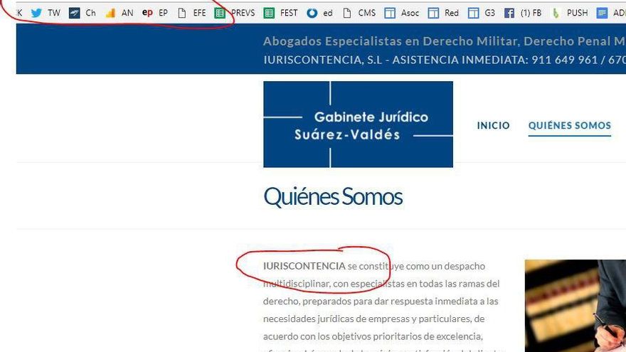 En la página web del bufete Suárez Valdés dentro del epígrafe “Quienes Somos” figura lo siguiente: “Iuriscontencia se constituye como un despacho multidisciplinar, con especialistas en todas las ramas del derecho, preparados para dar respuesta inmediata a las necesidades jurídicas de empresas y particulares, de acuerdo con los objetivos prioritarios de excelencia, eficacia y búsqueda de la máxima satisfacción del cliente en todos sus servicios”.