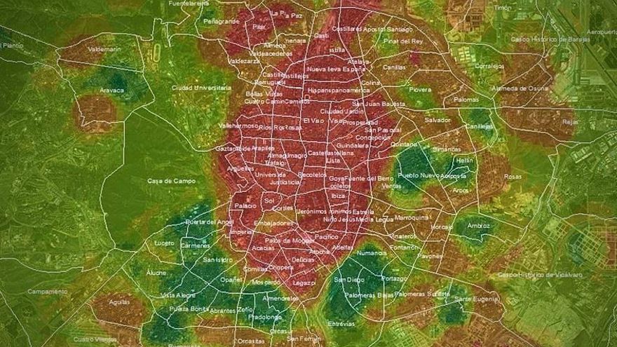 ¿Dónde hay más pisos sin ascensor? Como en muchas cosas en Madrid, los que pierden son los barrios del sur. Este mapa de Urban Data Analytics muestra en rojo los barrios dónde hay más viviendas con ascensor y en verde dónde predominan las que no. Latina, Villaverde, Vallecas... Solo se cuela una zona de renta alta entre las verdes −Aravaca− pero porque son casi todo chalés.
