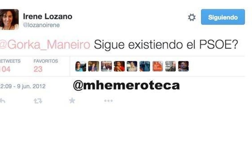 Irene Lozano ha fichado por el PSOE. El mismo partido que, según ella, permitía “las prácticas corruptas de cargos públicos” y “la impunidad de cargos públicos acusados de corrupción”. Era septiembre de 2012: