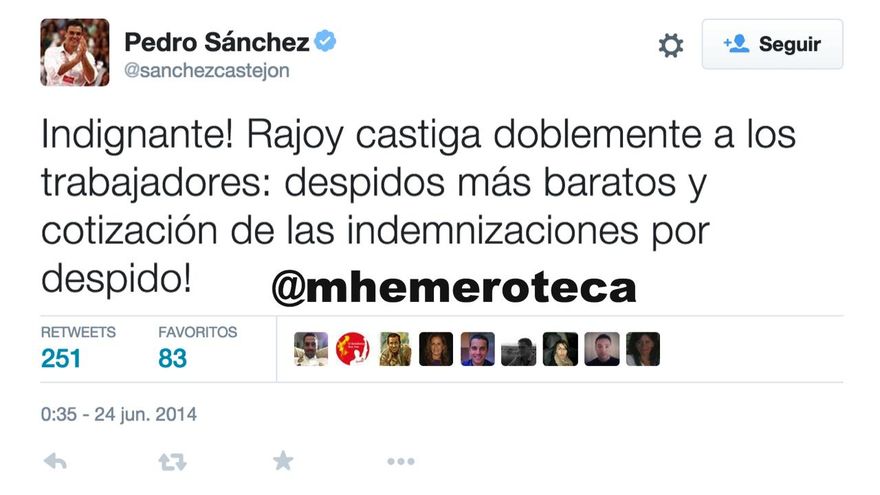 Pedro Sánchez no pretende derogar la reforma laboral del PP completamente como primera medida de gobierno, sino sólo algunos puntos entre los que no se encuentra el abaratamiento del despido. Y eso que nos ha dicho por activa y por pasiva que los despidos y la pérdida de derechos laborales eran sus principales razones: