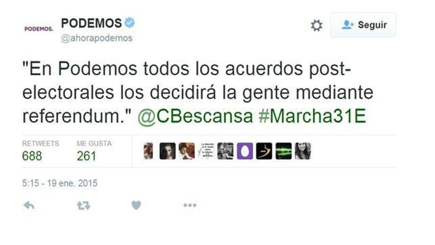 No sabemos en qué quedará la oferta de gobierno de Podemos. Lo que sí sabemos es que será sometida a referéndum. O al menos eso es lo que prometieron...