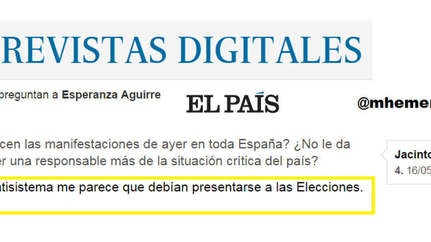 No es la única. Esperanza Aguirre, un día después del 15M, lanzaba un mensaje parecido. Ahora, con los “antisistema” en el Ayuntamiento, si el PSOE quiere, Aguirre no será alcaldesa...