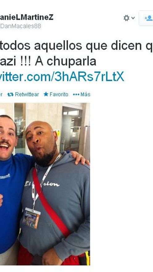 Pero después del embrollo en twitter, y de que la foto corrió como la pólvora, el propio Daniel Martínez retiró la foto y puso otra, con un atleta negro, en la que decía: “Para todos aquellos que dicen que soy nazi!!! A chuparla”.