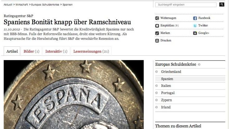 La degradación de la deuda pública española casi hasta el nivel del bono basura que ha llevado a cabo Standard & Poor’s ha tenido un fuerte impacto en la prensa europea. Los diarios alemanes (Frankfurter Allgemeine Zeitung y Suddeutsche Zeitung) hacen una lectura muy pesimista de este nuevo dato, que hoy les sirve de pórtico para trazar el rosario de gravísimos problemas que aquejan a España. Y el Financial Times pronostica que la calificación de S&P provocará “volatilidad en los mercados”. Pero este diario, por muy de los negocios y del dinero que sea, también se suele ocupar de otros aspectos de la crisis. Y hace dos días daba publicidad a un informe cuyas conclusiones son tan inquietantes o más que los peores datos económicos.