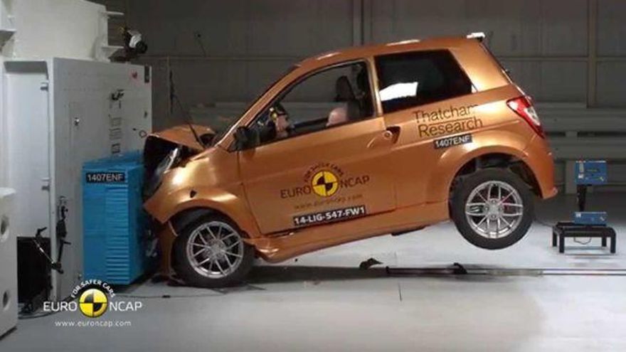El siguiente vídeo, que precisa pocos comentarios, muestra las consecuencias del choque estándar de Euro NCAP –colisión frontal contra una barrera deformable desplazada ligeramente hacia un lado– en el Rover en comparación con un Honda Jazz actual, que ha obtenido cinco estrellas. Las consecuencias para los ocupantes del coche inglés recuerdan bastante, por cierto, a las que la entidad pronostica para los usuarios de los microcoches actuales.