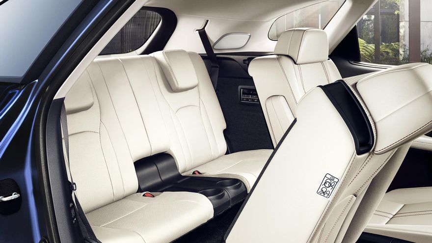 En el RX 450h L, los asientos de la tercera fila cuentan con dos posiciones distintas, y sus ocupantes disfrutan de más espacio para las piernas, suponemos (pues Lexus no lo especifica) que a costa de perder cierta capacidad en el maletero, que en el modelo actual es de 211 litros con todas las plazas ocupadas. La segunda fila también se ha reconfigurado para incluir asientos Capitán, que añaden 95 milímetros de espacio para las piernas de los pasajeros del fondo y les proporcionan una sensación de mayor desahogo.