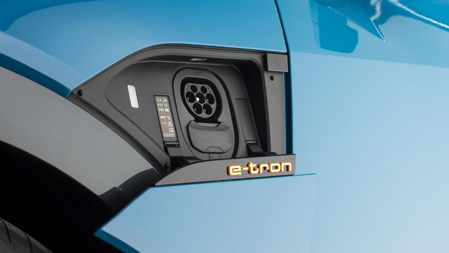 Fabricado en la nueva planta de Audi en Bruselas, que también produce la batería del coche, el e-tron luce una parrilla más ancha y baja de lo habitual en los otros SUV de la marca, y casi cerrada dada la nula necesidad de refrigeración de todo vehículo eléctrico. Las luces traseras recorren la zaga de tal modo que sugieren la presencia de una nave espacial, sobre todo de noche. En cuanto al lateral, exhibe una pronunciada caída del techo en su tramo final y una línea de cintura baja que le aporta músculo, especialmente por la combinación con las llantas de gran tamaño (hasta 21 pulgadas, y hasta 22 próximamente). La toma de recarga eléctrica se ha colocado en la aleta delantera izquierda, aunque en breve estará disponible otra opcional en el flanco derecho.