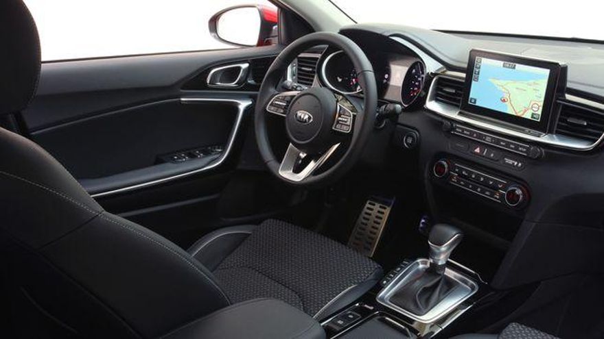 En la parte delantera del habitáculo, el nuevo Kia Ceed mejora en presentación y construcción, ofreciendo un considerable salto en calidad general percibida. Como el i30, el salpicadero está dividido en dos zonas -en la superior con pantalla táctil de hasta 8 pulgadas y en la inferior mandos de climatización y audio- y el cuadro de instrumentos ofrece una lectura amable y moderna.
