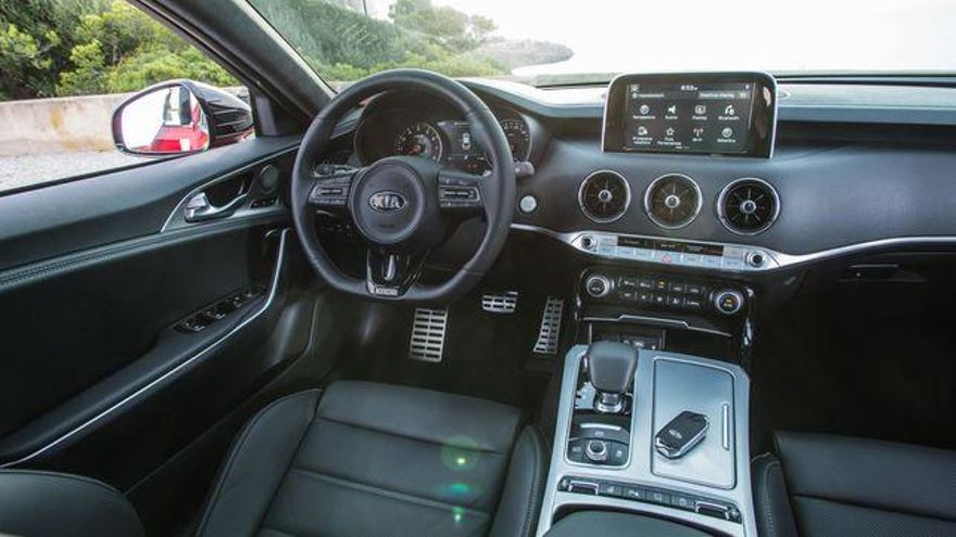 Por su parte el chasis está fabricado al 55% en aceros de alta resistencia y la suspensión es independiente (McPherson delante y multibrazo detrás), dotando al Kia Stinger de un comportamiento dinámico de gran categoría: es confortable, silencioso y estable a velocidades muy elevadas y al mismo tiempo se comporta con agilidad en carreteras con curvas para sus dimensiones y peso (aunque, en último termino, no se trate de un coche deportivo).