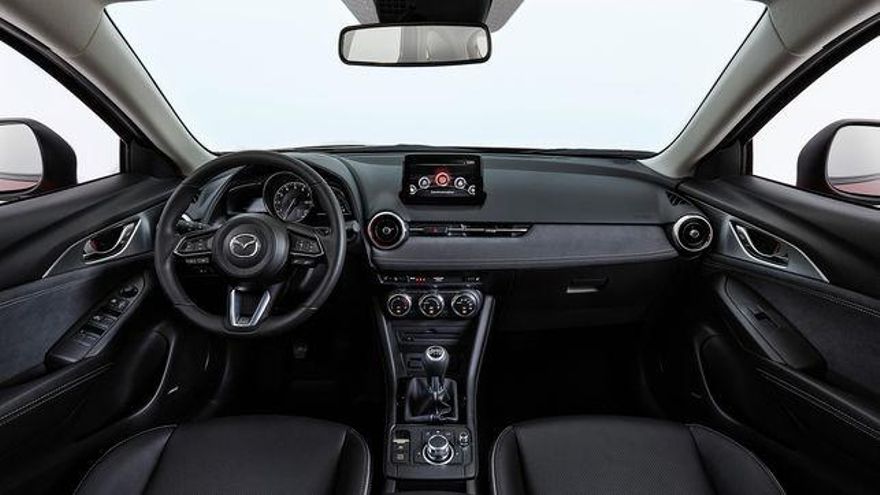 Construido con buenos materiales y una notable terminación, el habitáculo presenta diferentes atmósferas en función del acabado. De esta manera, en los niveles más básicos (Origin y Evolution) el Mazda CX-3 incluye unos asientos con tapicería negra de tela, semipiel negra (Zenith) o piel en color blanco (Zenith Pack White).