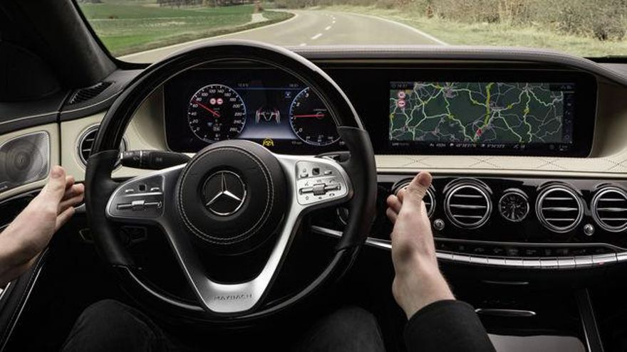 En el habitáculo destacan dos pantallas de 12,3 pulgadas de diagonal unidas por un cristal único que conforman un puesto de conducción ‘widescreen’. El volante, que estrena mandos sensibles al tacto, recibe ahora los dedicados al asistente de velocidad y distancia Distronic.