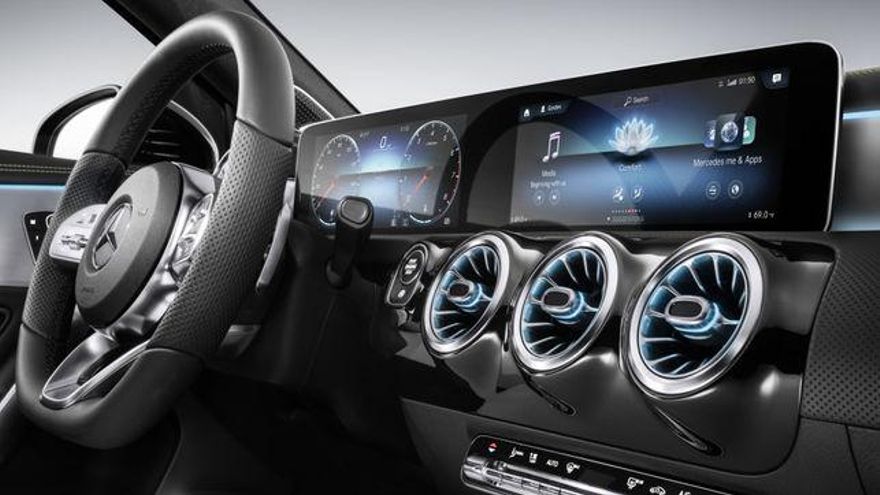 Seguramente lo más llamativo del interior del nuevo Clase A sea su sistema de doble pantalla que recurre a nuevas interfaces y a tecnología de inteligencia artificial para los nuevos sistemas de entretenimiento y navegación (MBUX), por un lado, y la instrumentación digital, por otro. Esas pantallas pueden ser: ambas de 7 pulgadas, una de 7 y otra de 10,25 o las dos de esta última diagonal.
