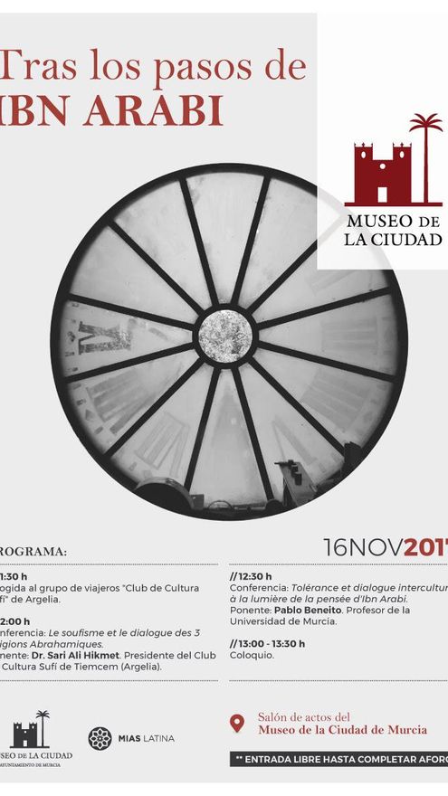 El Salón de actos del Museo de la Ciudad acogerá mañana, jueves 16, la conferencia Tras los pasos de Ibn Arabi, un encuentro promovido por el Club de Cultura Sufí de Argelia y MIAS-Latina.