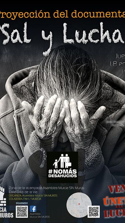 El próximo jueves 18 de enero se proyectará a las 19:00 el documental No tengas miedo, sal y lucha en la zona de acampada Asamblea Murcia Sin Muros, en la calle Orilla de la Vía.