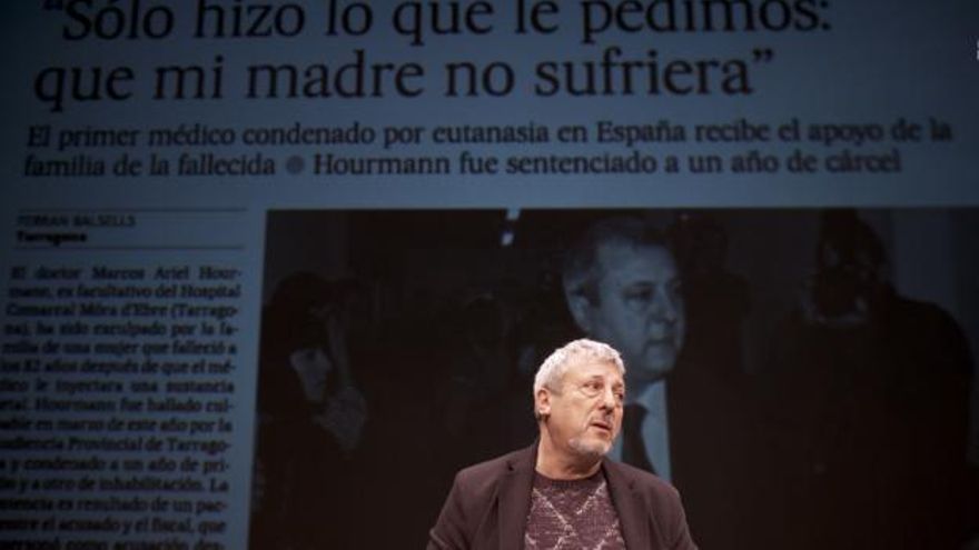 Entre las propuestas teatrales más políticas, de riesgo, destaca: `Celebraré mi muerte´ (domingo 29, 21:00H) en el Teatro Villa de Molina, producida por Teatro del Barrio (Jordi Évole y Alberto San Juan). Un médico declarado culpable de homicidio, un jurado formado por miembros del público y una pantalla. Ésta es la puesta en escena de una obra que plantea un debate profundo sobre la eutanasia. Como dice el propio Dr. Hourmann: “Si queremos vivir bien, ¿por qué no podemos morir bien?”. Nueve miembros del público elegidos al azar estarán junto a él sobre el escenario. Ellos se convertirán en el jurado popular del juicio que nunca tuvo. Y dictarán sentencia.