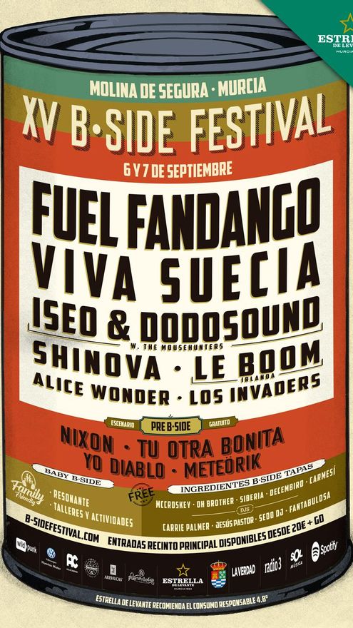 - El B-Side, que celebrará su XV edición los días 6 y 7 de septiembre en Molina de Segura, cuenta en su cartel con las actuaciones de los irlandeses Le Boom, Fuel Fandango, Viva Suecia, Iseo & Dodosound y Shinova
