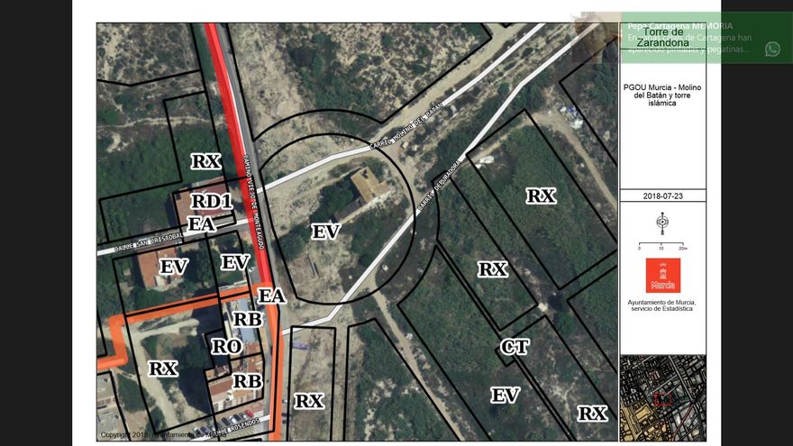 La Asociación para la Conservación de la Huerta y el Patrimonio de Murcia (Huermur) denuncia que el Ayuntamiento de Murcia está construyendo unos muros de hormigón a escasos metros de la torre medieval de Zarandona o del Batán, una actuación que según el colectivo atenta gravemente contra la efectiva contemplación de este monumento huertano declarado Bien de Interés Cultural (BIC). Asimismo, desde la asociación consideran que la torre, con estos nuevos muros de hormigón, se quedará en un foso que será “foco de constantes insalubridades al igual que la muralla de la calle Sagasta en Murcia”.