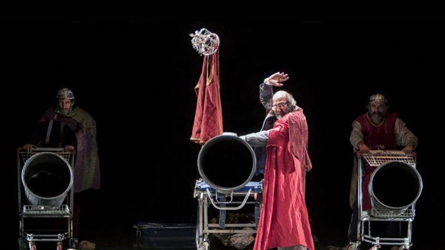 La Zaranda nos tiene acostumbrados a finales épicos. En su anterior producción, El grito en el cielo, también concluía con los actores en lo alto de unos carros-jaula con lo que habían construido otro universo del desamparo. En este caso, los mendigos, los artistas precarios, los tirados, los malditos, los Lear, los Segismundos… se elevan sobre el escenario y la rabia lleva el fracaso a lo alto de unos cubos de basura donde se transmuta en algo grande y sagrado. Y junto a ellos, cada espectador, en la intimidad de la butaca, liquida sus propias existencias.