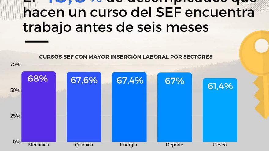 El 45,6 por ciento de los desempleados que completan un curso de formación del SEF son contratados en los siguientes seis meses, según el último informe trimestral ‘Inserta’ realizado por el propio SEF, que evalúa la relación entre la formación y su principal propósito: allanar el acceso al mercado laboral. Se trata de un incremento de 1,2 puntos con respecto al anterior informe, que reflejaba un dato del 44,4 por ciento.