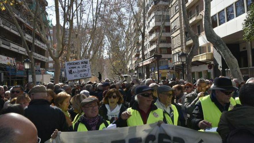 Alrededor de mil personas se manifestaron esta mañana frente a la sede del Instituto Nacional de la Seguridad Social (INSS) en Murcia para protestar frente a la subida del 0,25% de las pensiones, el mínimo que marca la ley, por quinto año consecutivo.