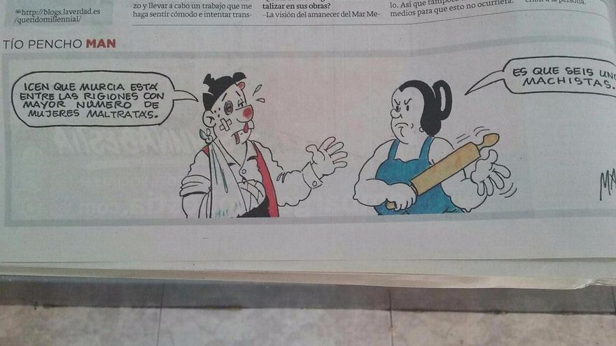 “Lacra”, dice la RAE del “defecto o vicio que marcan a una persona o, especialmente, a la sociedad”. Esto no es una lacra, no es un defectillo o un pequeño vicio con el que se pueda hacer humor, con el que se puedan sacar tiras cómicas en un periódico diario, que por cierto, vaya luces ha tenido al permitir que esta viñeta sea publicada.