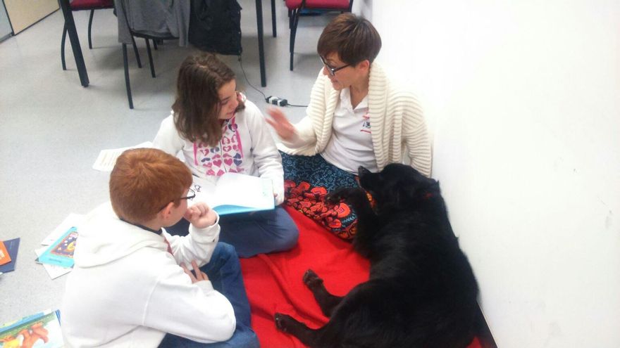Perros y gatos abandonados que motivan a los niños a leer con su compañía