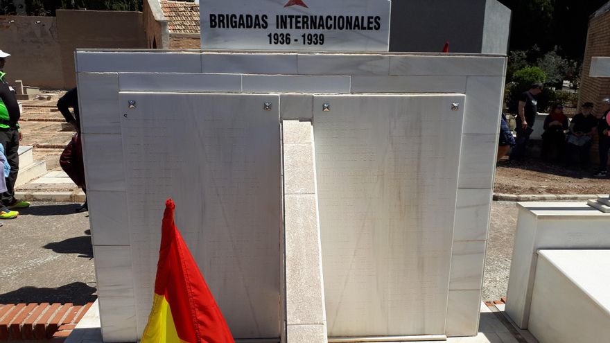 El octogésimo séptimo aniversario de la República finalizó cuando los asistentes se desplazaron al monolito cercano que rinde homenaje a los brigadistas internacionales que fallecieron en Murcia durante la guerra civil.