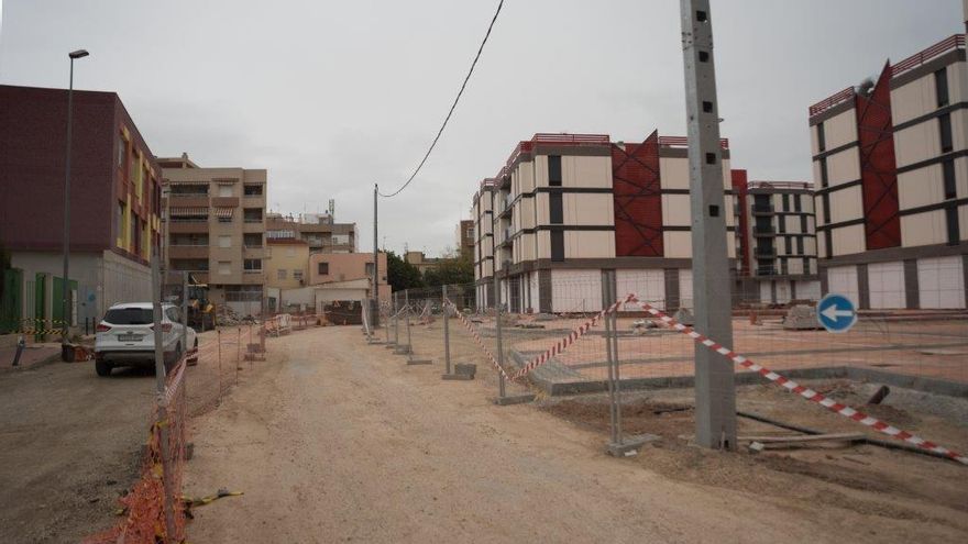 Donde todavía hay pisos sin construir es el barrio de San Fernando. Situado cerca de la salida de Lorca, en la Alameda de Cervantes hay unos vistosos edificios blancos, rojos y negros todavía acordonados. Un total de 240 familias sigue esperando para poder instalarse allí. Las calles continúan sin estar asfaltadas y ni siquiera se ha montado la instalación eléctrica.