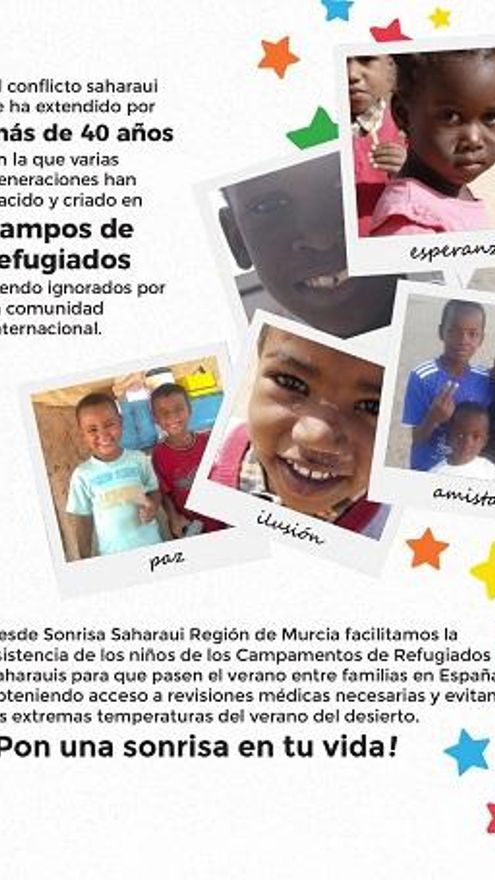 La asociación Sonrisa Saharaui Región de Murcia busca personas que quieran cambiar la realidad de los cientos de niños que viven en los campos de refugiados del Sahara Occidental. El pueblo saharaui vive en condiciones muy complicadas, “algunas familias no cuentan con luz eléctrica todavía y conseguir agua siempre es complicado, es muy escasa”, explica Juana Abenza, presidenta y madre de acogida de Sonrisa Saharaui.