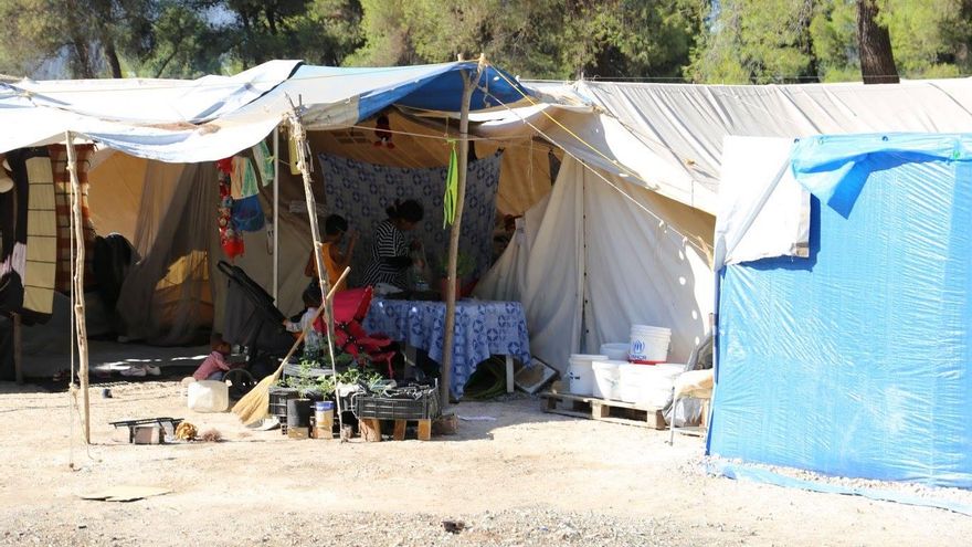 Joaquín Sánchez, el cura, con una familia de refugiados en el campo de Ritsona, Grecia