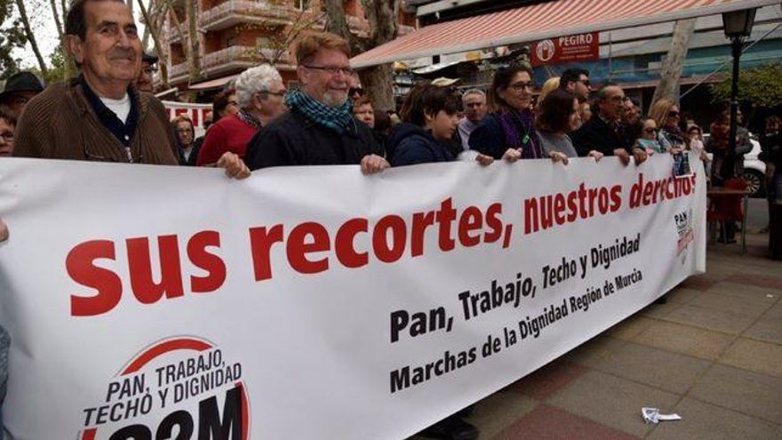 Otro de los grupos presentes han sido las Marchas de la Dignidad de la Región de Murcia, una plataforma que aglutina a diferentes partidos políticos, sindicatos y movimientos “por una vida digna, trabajo, techo e igualdad”.