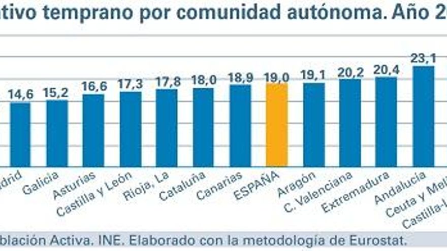 Por otra parte, España tiene la segunda tasa de abandono más alta en toda la Unión Europea, por detrás de Malta, con un 19,6%. La media de la UE se sitúa en torno al 10,7%, lo que deja a Murcia en una diferencia porcentual de 15,7% con respecto a la Comunidad Europea.