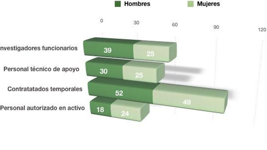 Aunque las estadísticas de participación de mujeres en las escalas altas de la investigación es superior en el CEBAS a la media de los centros de Investigación a nivel nacional, los datos relativos a 2018 confirman que el 'techo de cristal' sigue siendo un obstáculo a superar. Las mujeres son mayoría en la sección de personal autorizado (57%), ocupan un porcentaje alto en los contratos temporales (48,52%), el porcentaje es inferior cuando consideramos el personal funcionario de apoyo (45,45%) y también disminuye en el apartado de personal funcionario investigador (39,06%). En total, en el CEBAS actualmente hay 262 trabajadores, de los cuales 123 son mujeres (46,95%). No obstante, en los últimos años se ha podido apreciar que el porcentaje femenino en cargos de responsabilidad de este centro ha ido aumentando notablemente (gerencia, vicedirección, jefas de departamento).