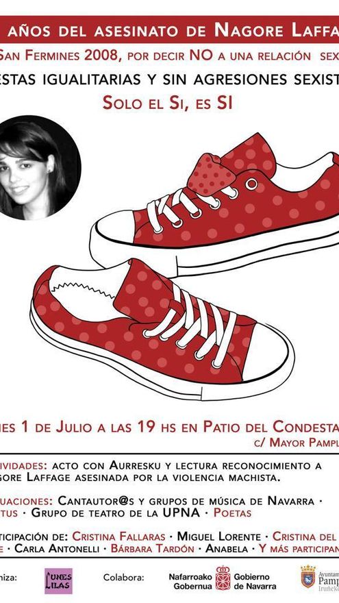 El lunes, los colectivos feministas recordarán en Pamplona el 11 aniversario del asesinato de Nagore Laffage en un acto en el palacio Condestable de Pamplona. Un año más, volverán a pedir unas fiestas “igualitarias y libres de agresiones sexistas”.