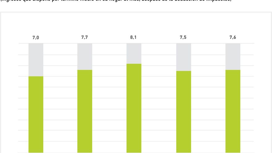 Otra de las sorpresas, ya demostrada en EEUU, es que no es lineal el aumento de renta con la felicidad. “Las clases medias, las que no tienen que pensar mucho en el dinero ni por falta ni por exceso, son las más felices”, apunta Campos. “Hay un momento que conforme aumenta la renta decrece la felicidad. En EEUU lo sitúan en 50.000 dólares al año. En el estudio, los ingresos por unidad familiar de las personas más felices se sitúan entre 1.800 y 3.000 euros al mes. De 3.000 a 5.000 baja”, recalca el sociólogo. Es cierto que la falta de dinero impide la felicidad, ya que las unidades familiares con menos de 900 euros al mes son las más infelices, y ya de 900 a 1.800 crece. “Una vez cubiertas necesidades básicas, no aumenta mucho más”, insiste.