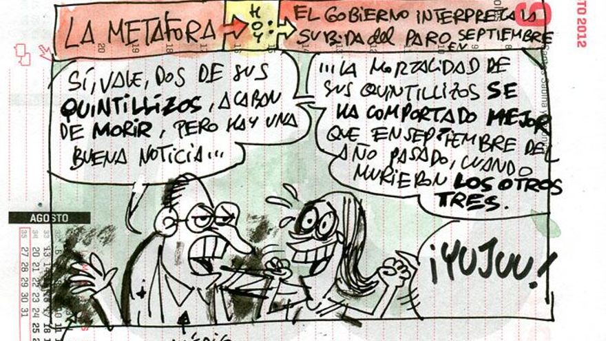 Las vitrinas de la exposición, así, recogerán rarezas que Vergara ha mostrado en ocasiones a través de sus blog, bernardovergara.com y territoriovergara.es que, por cierto, reconoce que tiene que actualizar. Podrán verse diseños iniciales hechos sobre hojas de agenda, ideas descartadas y viñetas finalmente escogidas. Un proceso, en definitiva, que parece reivindicar el trabajo detrás de cada historieta, ese esfuerzo para intentar lograr “un artículo de opinión que haga reír” y resumir el tema del día en un vistazo.