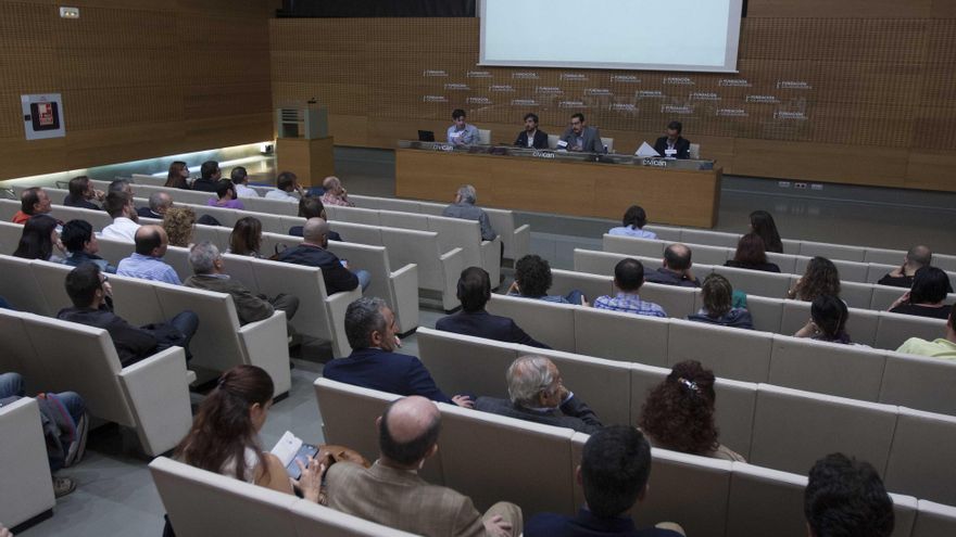 Escolar y Marin han estado acompañados por el presidente de la Asociación de Periodistas de Navarra, Miguel Ángel Barón, y por el miembro del equipo eldiarionorte Navarra, el periodista Garikoitz Montañes. El acto de presentación ha tenido lugar en el centro cívico Civican y a él han asistido cerca de un centenar de personas, algunas relacionadas con el mundo de la comunicación, la política, la empresa, los movimientos sociales, el mundo sindical y la cultura de Navarra.