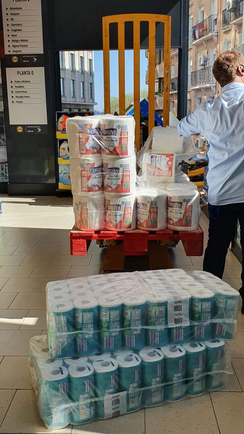 Esta vez conseguimos pan de molde sin dificultad. El problema era la carne. (Yo soy vegetariana pero mi familia guarda una distancia de seguridad conmigo, en ese aspecto). Las estanterías estaban temblando y apenas quedaban algunas bandejas con opciones exóticas. Como una de esas cosas raras que la gente no se lleva es la hamburguesa vegana, me fui de allí contenta. Por otro lado, me alegré de tener suficiente papel higiénico en casa. De alguna manera, me daba vergüenza comprarlo hoy, después de los mil memes que hemos recibido y compartido en estos días.