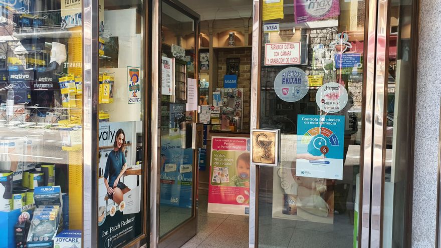 “Ojito con el pomo de la puerta”, le digo a Alberto, innecesariamente porque le han puesto un tope para que se quede siempre abierta. Pegado al cristal, un cartel advierte que solo se puede entrar de dos en dos. Metemos la cabeza y, como no hay nadie, entramos. Pero tampoco podemos hacerlo mucho. Los farmacéuticos han levantado una barricada de un metro de alto entre ellos y nosotros con todos los displays publicitarios que han podido encontrar. “¡Bonita exposición de carteles que nos habéis puesto aquí!”, les dice Alberto, un poco a voz en grito por si no nos oímos bien. El farmacéutico se ríe y contesta: “no sabemos ni lo que ponen, pero oye”. “Pero oye” quiere decir que cumplen bien su función, que está claro que esa es su línea de defensa y que más allá no te puedes acercar. Mientras Alberto pide sus pastillas, miro los carteles, o más bien los carteles me miran a mí, pues son siete u ocho caras más grandes del tamaño real, sonriendo ampliamente porque se les revierte la alopecia, no se les despega la dentadura postiza y la piel se les va a poner suavecita.