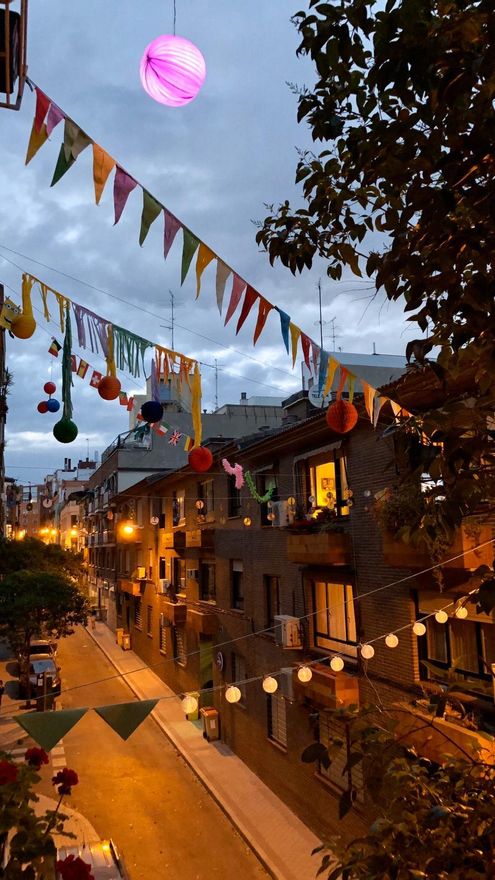 La calle Béjar ha cambiado bastante desde que yo la habitaba. Se han rebajado los aceras, se han eliminado las plazas de aparcamiento y, con los deportistas conquistando la calzada, se parece bastante al corredor peatonal que demandan los vecinos desde hace años. No respondía a mis recuerdos oscuros y sucios de hace una década. Me paré en mi antiguo portal y me alegré de no estar pasando el confinamiento en el piso interior en el que vivía. Seguí adelante, caminando calle arriba, fijándome en qué comercios habían cerrado y en cuáles nuevos habían abierto. Al llegar casi al final de su desembocadura, me detuve en el cruce con la calle Iriarte. Me llamó la atención ver, a lo lejos, lo que parecían cordones de banderines de colores colgando de balcón a balcón. Faltaba poco para que dieran las diez de la mañana y adentrarme en ella suponía dar un rodeo por Guindalera Vieja que me alejaba de casa. Miré el reloj y pensé que era mejor hacer caso al impulso, aunque luego tuviera que apretar el paso. Lo que vi, lo conté el 5 de mayo en este diario. Fue una escena fugaz que atravesé como un personaje secundario, quizás invisible para sus protagonistas, dos mujeres jóvenes que conversaban al coincidir delante de sus portales, después de haber salido a correr, un kilómetro alrededor de la calle Iriarte. Rememoro las únicas palabras que les escuché decir, mientras pasaba a su lado, embriagada por los aromas y colores de la calle, pisando retos de confeti dorado: