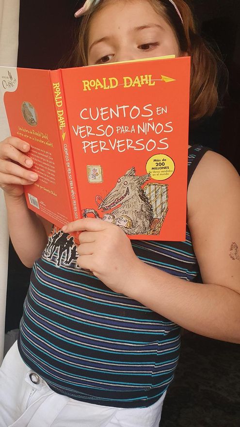 Eleonor pegó un grito de alegría cuando saqué del bolso el libro de Roald Dahl, porque este año leyó un libro suyo que de verdad le gustó. Pero de verdad, de verdad. Un poco menos de Minecraft y un poco más de cuentos perversos para niños en verso (sic) no nos va a venir nada mal.