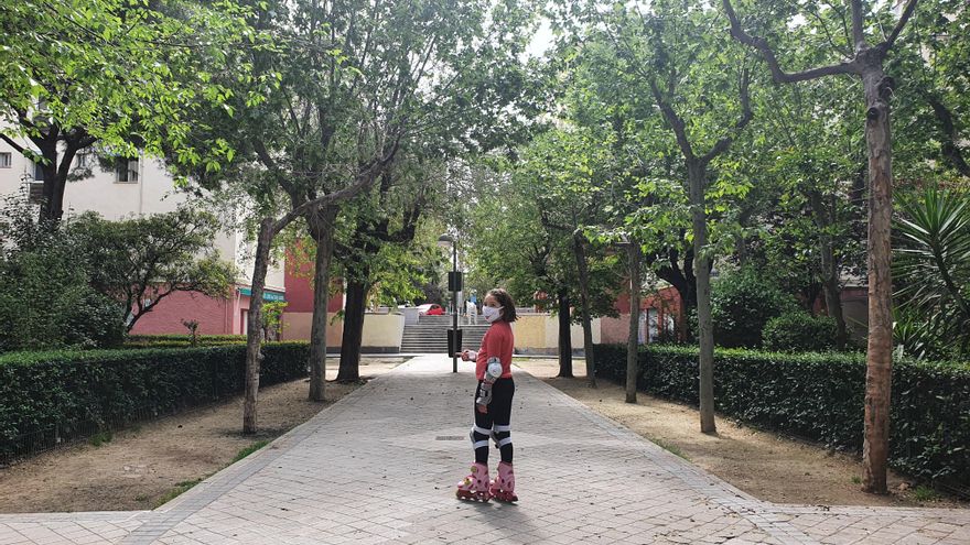 Nuestro primer paseo duró tres cuartos de hora. Volvimos a casa, nos quitamos las mascarillas, nos lavamos las manos y mandamos las fotos y los videos de nuestra hazaña a la familia (“¿ves que no era solo para mi diario?”, le devuelvo la pulla a Eleonor). El resto del día me asomo a dos ventanas: la de mi casa y la de Twitter. Son contradictorias. En mi barrio, Prosperidad, el segundo con más afectación del coronavirus en Madrid, los menores han salido de casa de manera moderada, sin juntarse con los amigos y con mascarillas, pues al menos la mitad de los niños y niñas con los que nos cruzamos, la llevaban.
