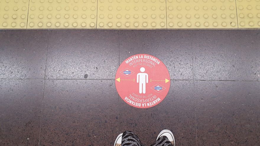 Cuando llegamos al andén, acabábamos de perder un tren y hubo que esperar más de diez minutos por el siguiente. El Metro de Madrid anterior al coronavirus no se caracterizaba por su gran frecuencia. Era lógico que ahora, con los viajeros a medio gas, tampoco. Al menos y a diferencia de un sábado primaveral sin pandemia, había tan poca gente que se podía pillar asiento. Pasamos los diez minutos observando a la gente con descaro. Ya me había dado cuenta, paseando por la calle, que vamos con la mascarilla como si nos tapara la cara entera, en lugar de solo media. A veces dan ganas de decirle al otro: oiga, deje usted de mirarme, si no fuera porque yo también lo estoy haciendo, fijamente.