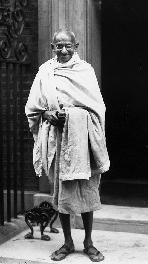 Su vestimenta no era una cuestión de estilo. Él mismo tejía, y animaba a otros a tejer, su propia ropa para predicar con el ejemplo de swadeshi. Sus campañas de desobediencia civil contra los británicos siempre fueron pacíficas y no dudó en cancelar acciones cuando estas se tornaban violentas.