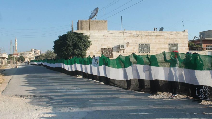Este rechazo al doble rasero de la “comunidad internacional” está presente en la producción artística y cultural de lo que queda del movimiento de desobediencia civil sirio, acosado tanto por el régimen como por Daesh. Una de las últimas iniciativas ciudadanas muestra a decenas de mujeres de Idlib sosteniendo una bandera revolucionaria, la más larga tejida hasta la fecha.