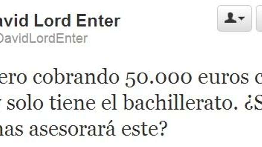 (¡Eh!, no olvidemos que será asesor de Ana Botella, es decir, este trabajo puede ir desde tareas de psicopedagogía hasta traductor de español-anabotella, pasando por explicaciones con guiñoles de los escaños en el Congreso. Yo los 50.000 los veo justificados).