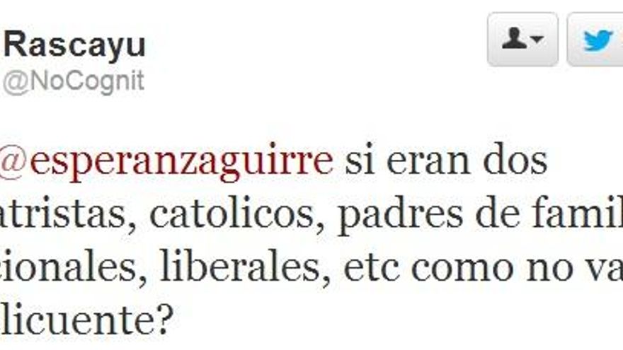 Aquí no. Porque aquí no hubiera sido ni delito. Que lo ha dicho Esperanza Aguirre.